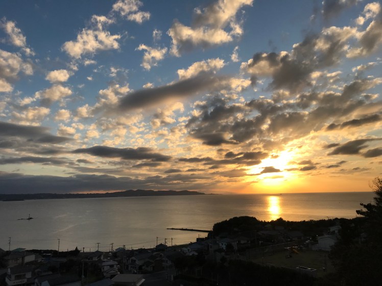 日の入りが4時半の4時頃だったので夕陽を見るにはちょうど良いかと。自分には見慣れた景色ではありますが、滅多に来ることのない家族には新鮮かと。