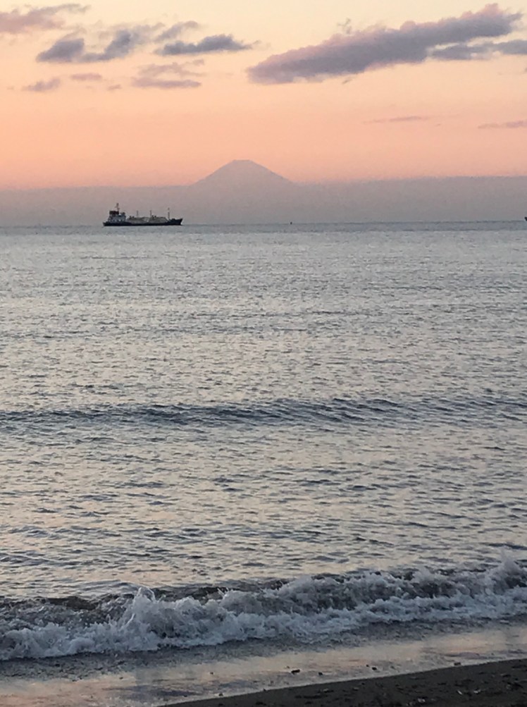 日の入りまであと12、3分と言うところで、影になって見えない富士山を見るため崖観音を降りて北条海岸に車で移動。