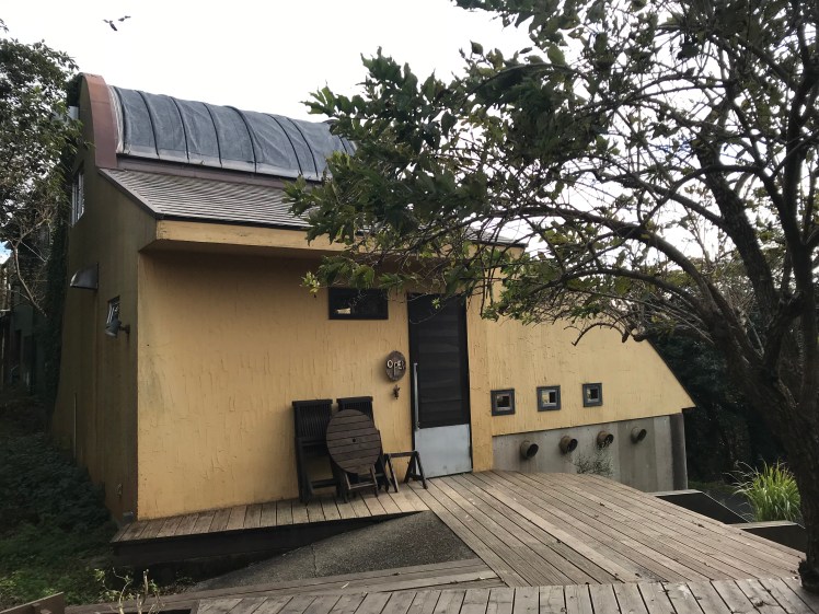 あたりに何もない、こんなところにと言う感じで、知ってる人しか来ない立地です。上の写真左端の階段を上がって、裏口のようなシンプルな扉が玄関。
