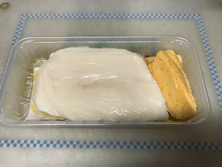 今朝一番で館山の地元スーパーときわやの魚売り場に行くと、珍しいマンボウのお刺身が入っていますと。早速買ってみました。