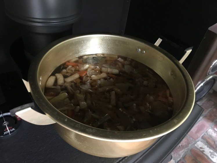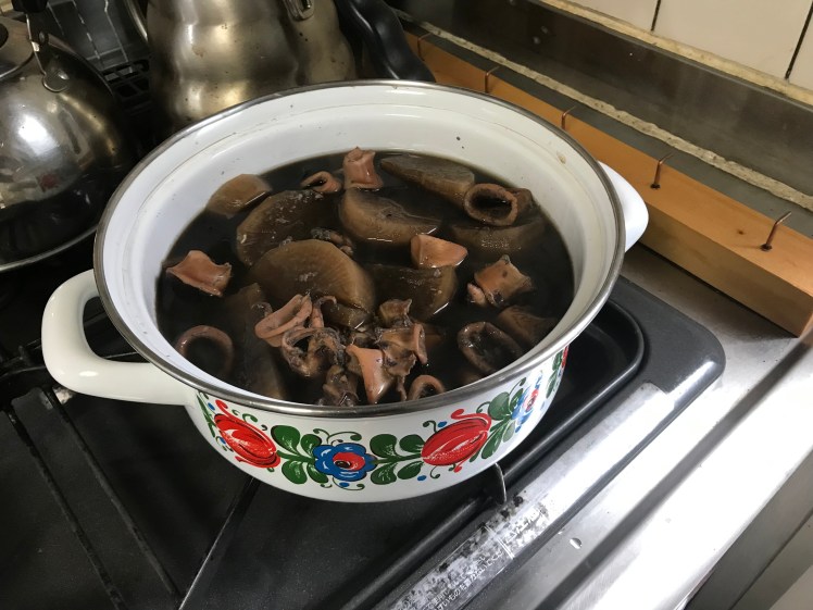 途中、昨夕、圧力鍋で作っておいたイカと大根の煮付けを。