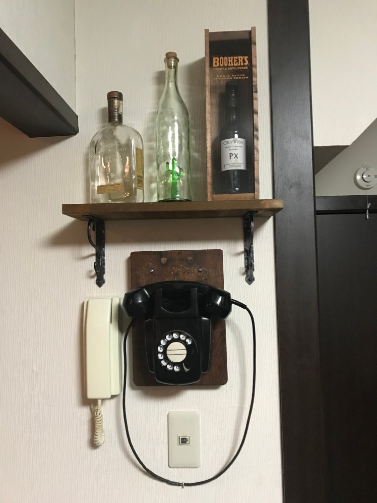 電話回線を契約していれば繋いで使えるはずですが、この家は固定電話の回線は契約していないのでインテリアです。まあまあ収まりいいかなと。