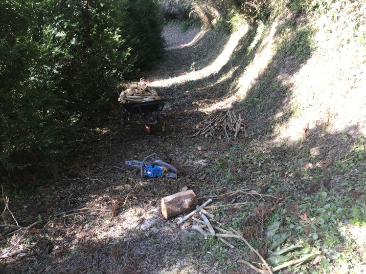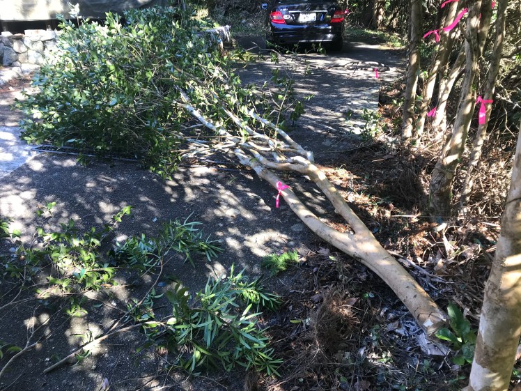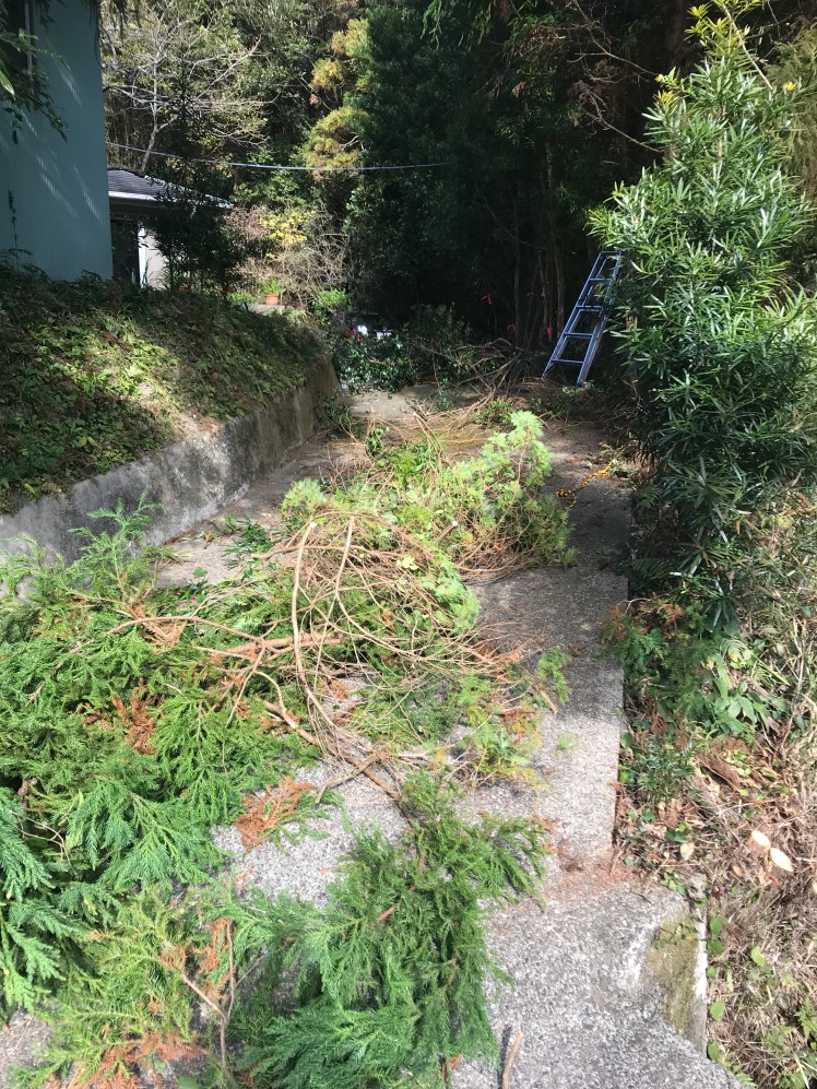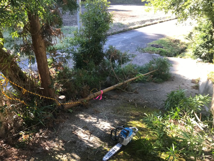 ここに居を構えて3年半、背丈ほどの木々はそれなりに手を入れてきましたが、大きな木は手付かず。結果、どんどん伸びて茂ってきます。