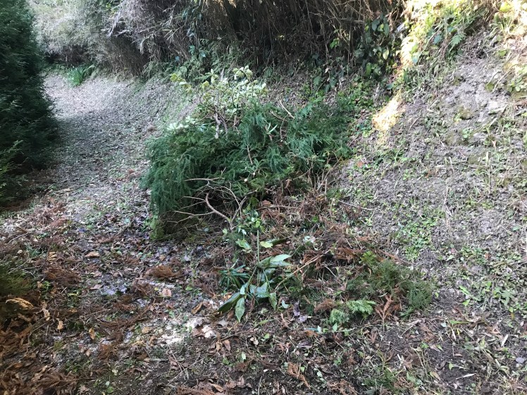 枝葉部分は取り敢えず今日処分出来ないので二箇所に分けて積んでおくことに。