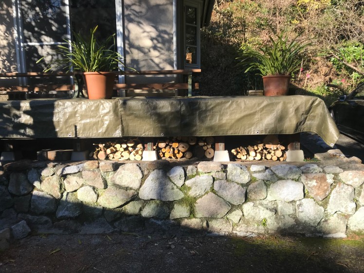 薪も乾燥させるためデッキの下に収納。