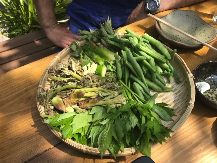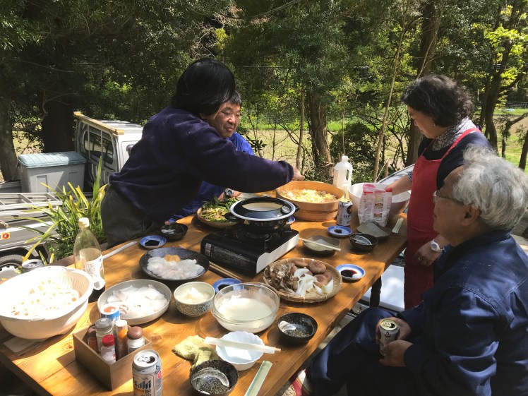 終わった後は皆でランチ。仲間が自宅から採ってきてくれたタラの芽ほか道の駅で調達してきてもらったウド、明日葉、椎茸、蓮根、プラス、マコウ鯛やマンボウなどの白身魚などでいつもの天ぷらで。