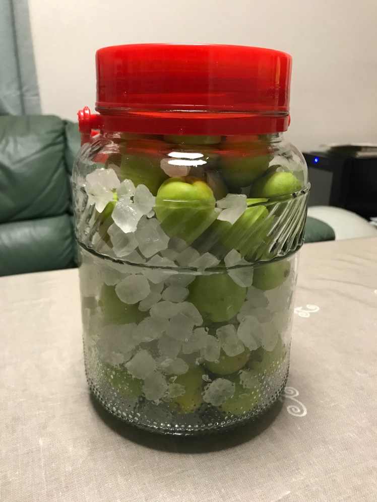 梅酒の方は容器が小さかったので取り敢えず1箱1.8lだけで漬け込み、来週、大きな瓶に移し替えてもう1.8lを足すことにしました。