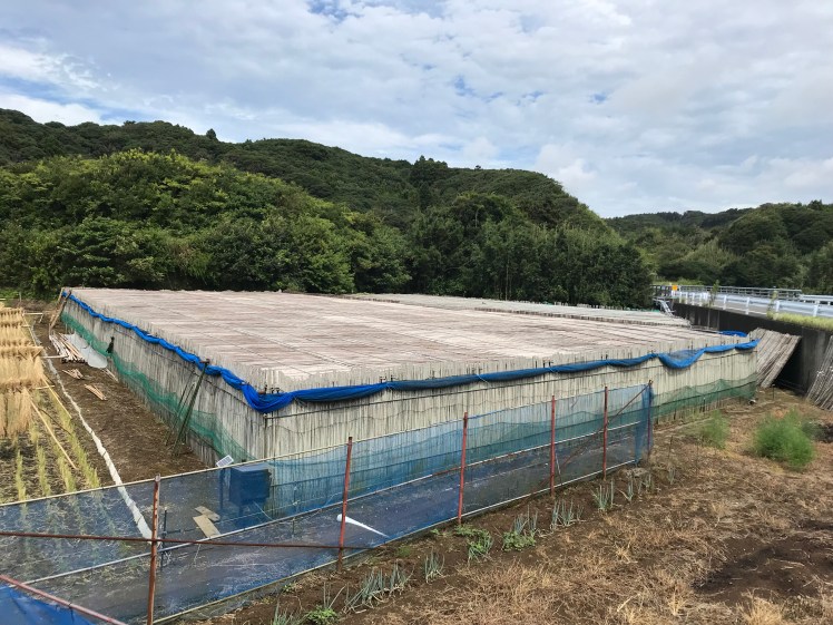 バイクは一人マイペースで90km。途中、安房グリーンロードの畑(羽田)地区を通り、万両を栽培する茅の小屋を撮影。