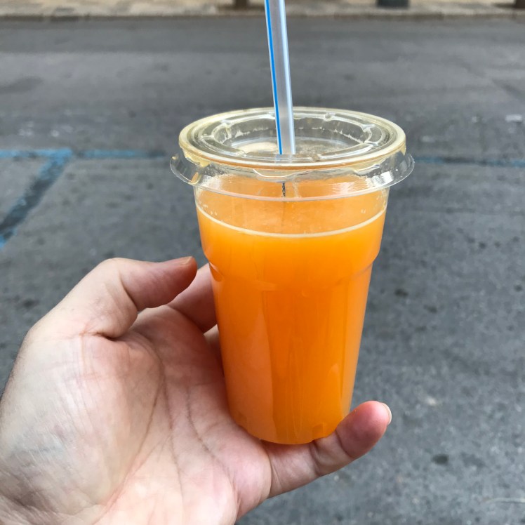 フルーツ店でフレッシュなオレンジジュースを買って頂きました。