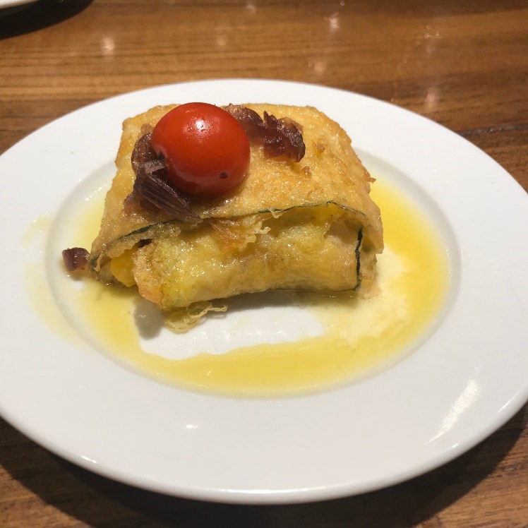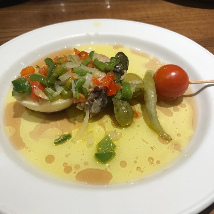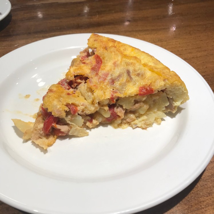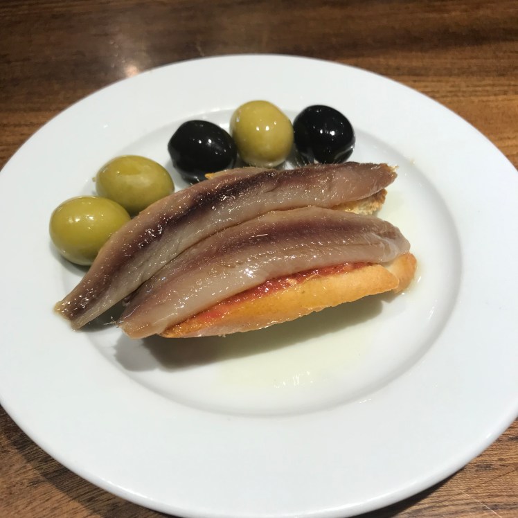 カウンターのハイチェアで頂きましたが、タパスは夜だと3ユーロのものが昼間は2.3ユーロ。混んでなくて店員さんともゆっくり話が出来、とても良いレストランでした。