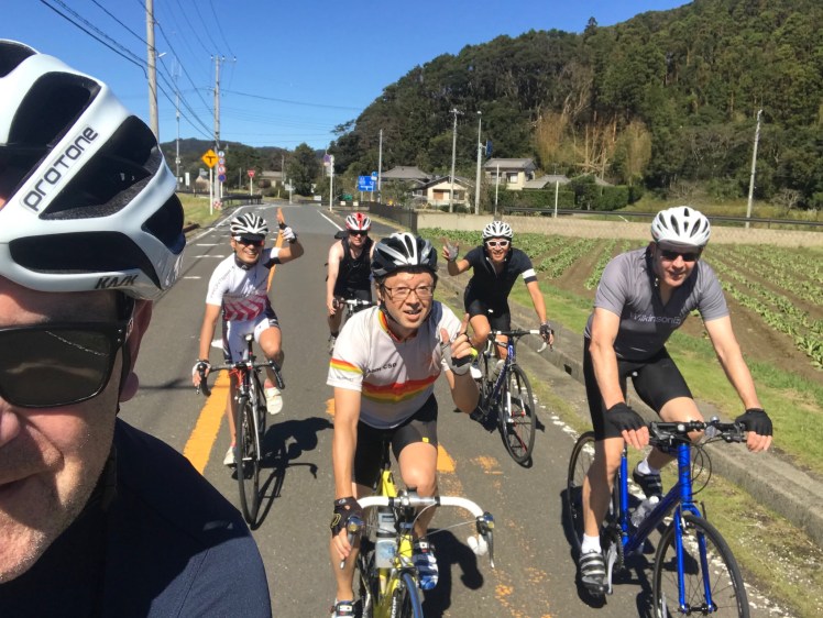 ラグビーワールドカップ、イングランドvsフランスの試合を観戦にロンドンから来た仕事関係の友人達。肝心の試合が台風で中止になりがっかり。その中の、自分がロンドン駐在時代、よくサリー地区を一緒にサイクリングしていた仲間と以前より南房総を走ろうと約束していたので、せめてサイクリングは実現してあげたいと思い、台風明けで状況が心配されましたが、今回はそれ程でもないことを確認し決行することに。夜間、通行止めだったアクアライン開通後直ぐに館山に向かい、館山道は不通でずっと下道で、最後、家の手前、竹が道路に散乱していて何度も降りて撤去しながら無事9時前に到着。家は停電もせず、水も大丈夫で一安心。自転車を積んで平群のサイクルステーションに向かいました。