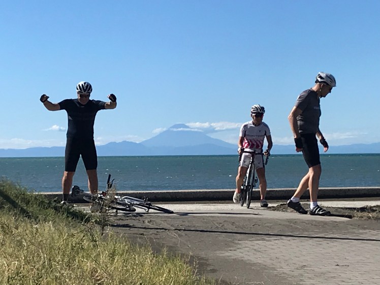 北条海岸に着いて富士山を撮影。皆、喜んでました。