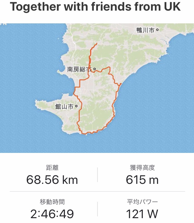 夕方、パブリックビューイングで日本vsスコットランド戦を見るため時間がないのでランチは抜き。70km弱でしたが、天気も良く楽しく走れました。