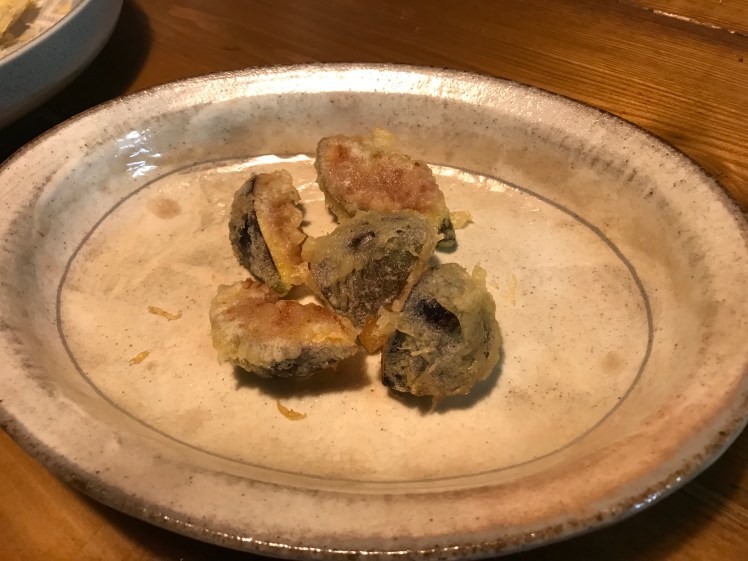 夜、昼間一緒に作業した二地域居住仲間が遊びに来て天ぷらパーティ。手伝ったビワ農家の友人から頂いたイチジクも天ぷらにしてみました。