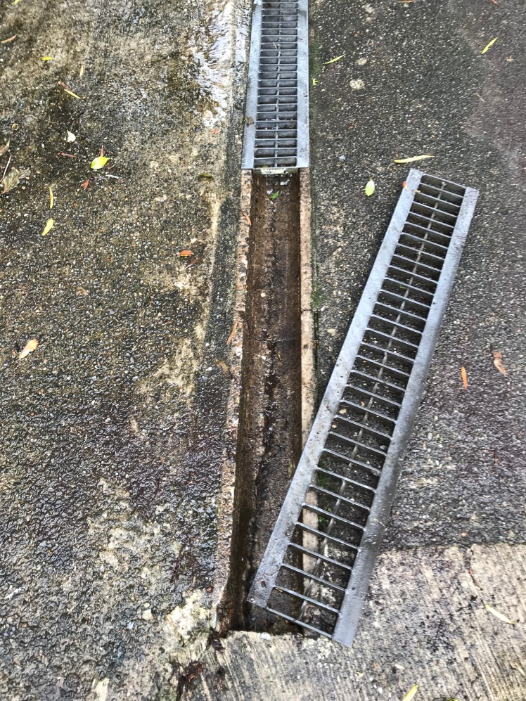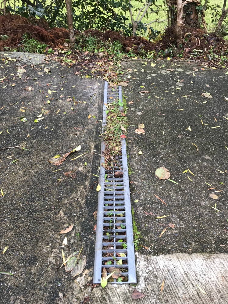 この後、すっかり落ち葉と土で詰まっていた庭の排水溝、指摘を受け掃除をすることに。