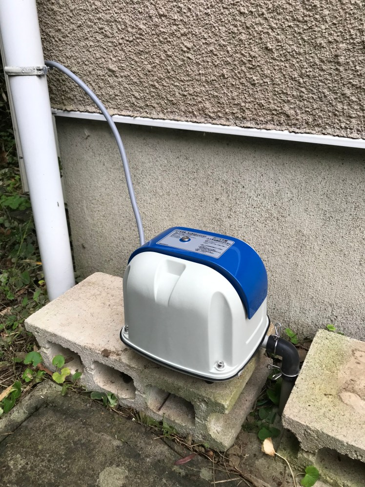 そして、何か水の関係のポンプだと思っていた小さな装置が浄化槽に微生物のために空気を送るためのポンプ、「ブロワー」であることが判明。