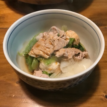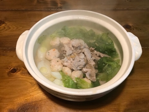 館山の名産レタス。二拠点仲間が口を揃えてレタスと豚肉の鍋は美味しいと言うので、こちらのレシピをもとに鶏団子も加えて作ってみました。