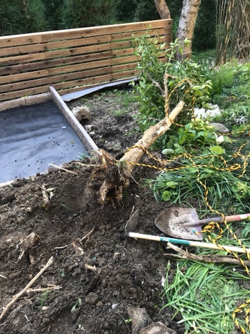 根を掘り起こしての作業はなかなか重労働。初めはびくともしなかった状態から忍耐強く一本一本根を探り当て切断、引き抜いて漸く抜けました。