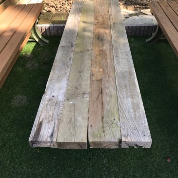 先日、知り合いの方から家を解体した際に出た古材を分けてもらいました。 長さも厚さも違うのでノコギリで長さを揃え、厚さは家にある端材で丁度良いのを探し調整して裏打ち。 そこに先日解体して不要になったベンチの脚を有効利用して … 続きを読む : 古材を使った炭火焼用テーブル
