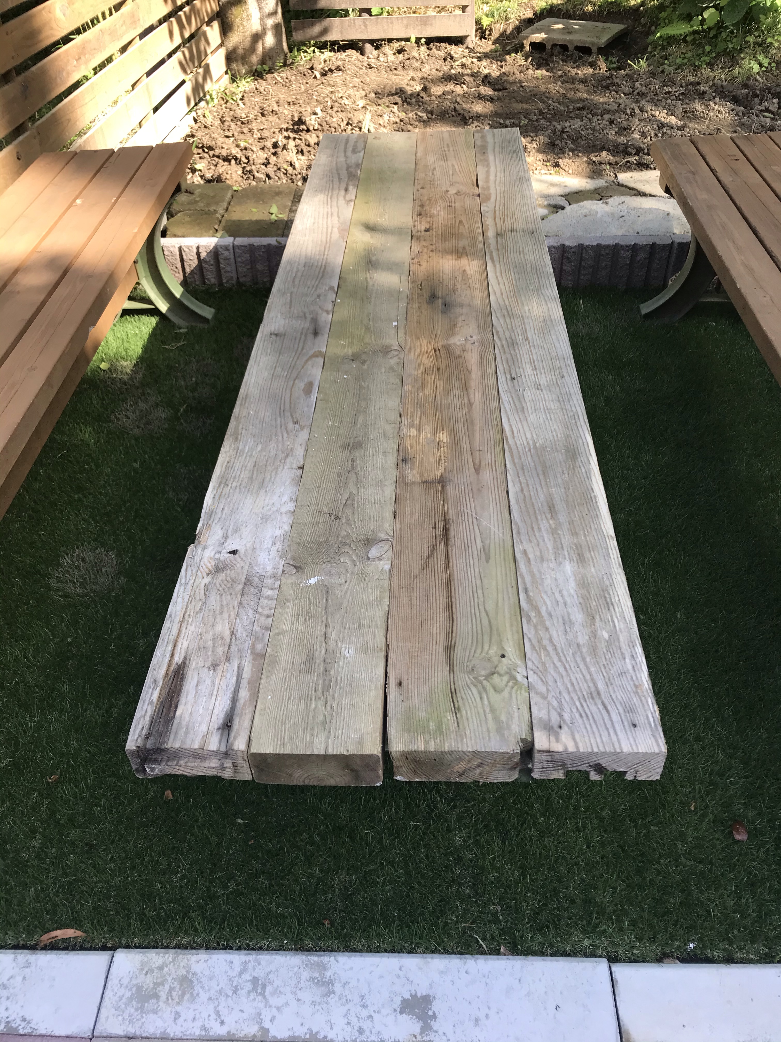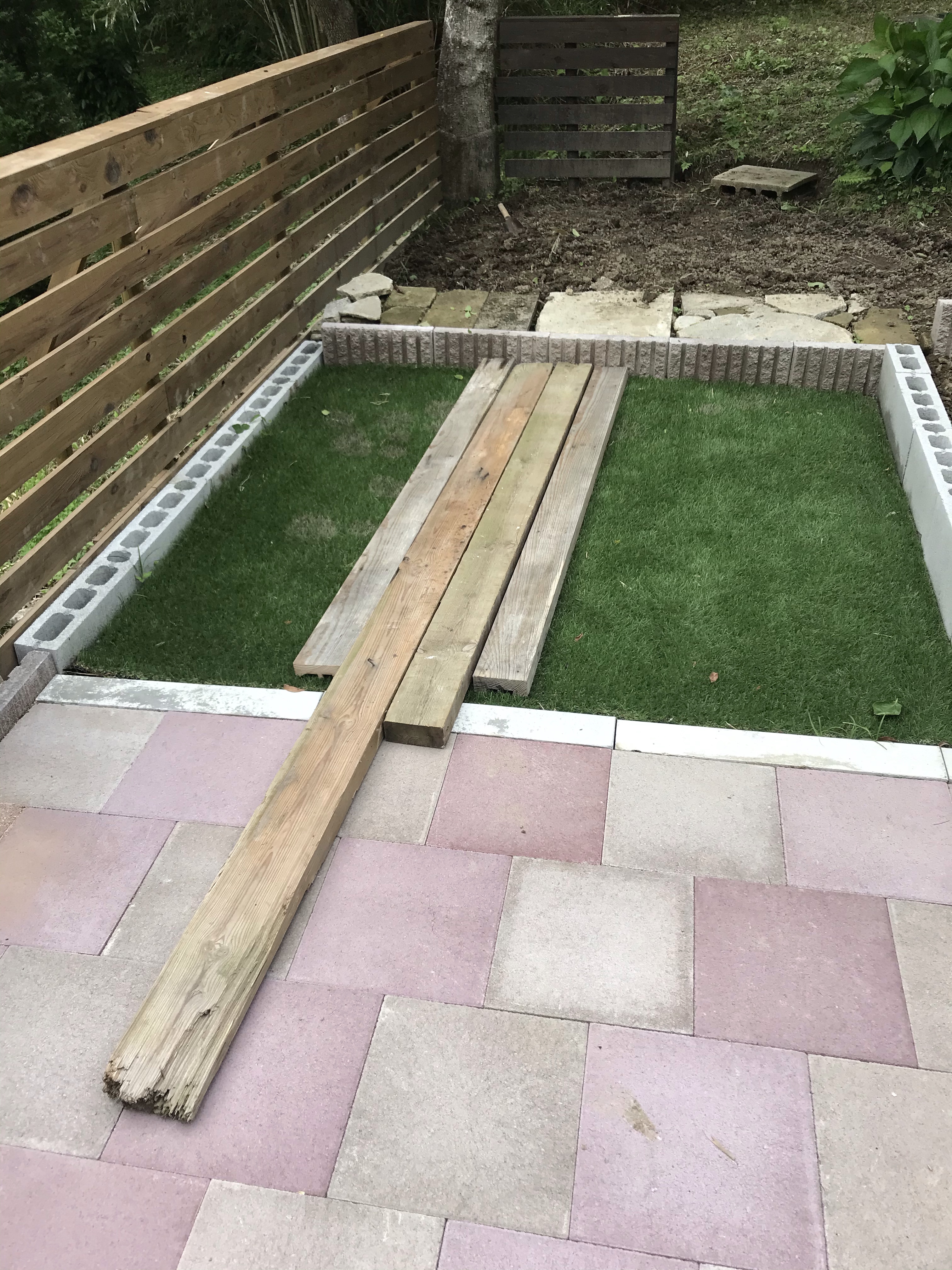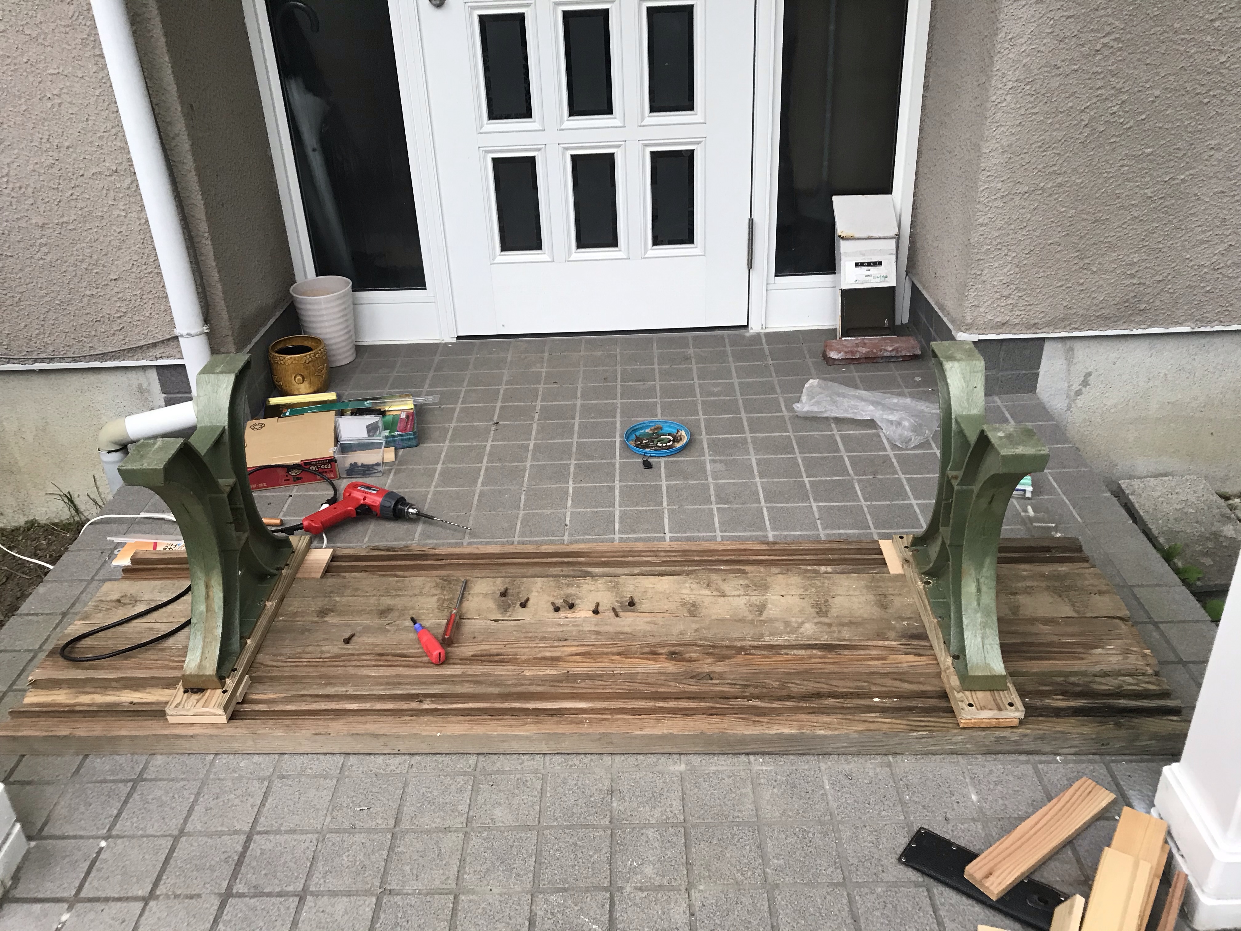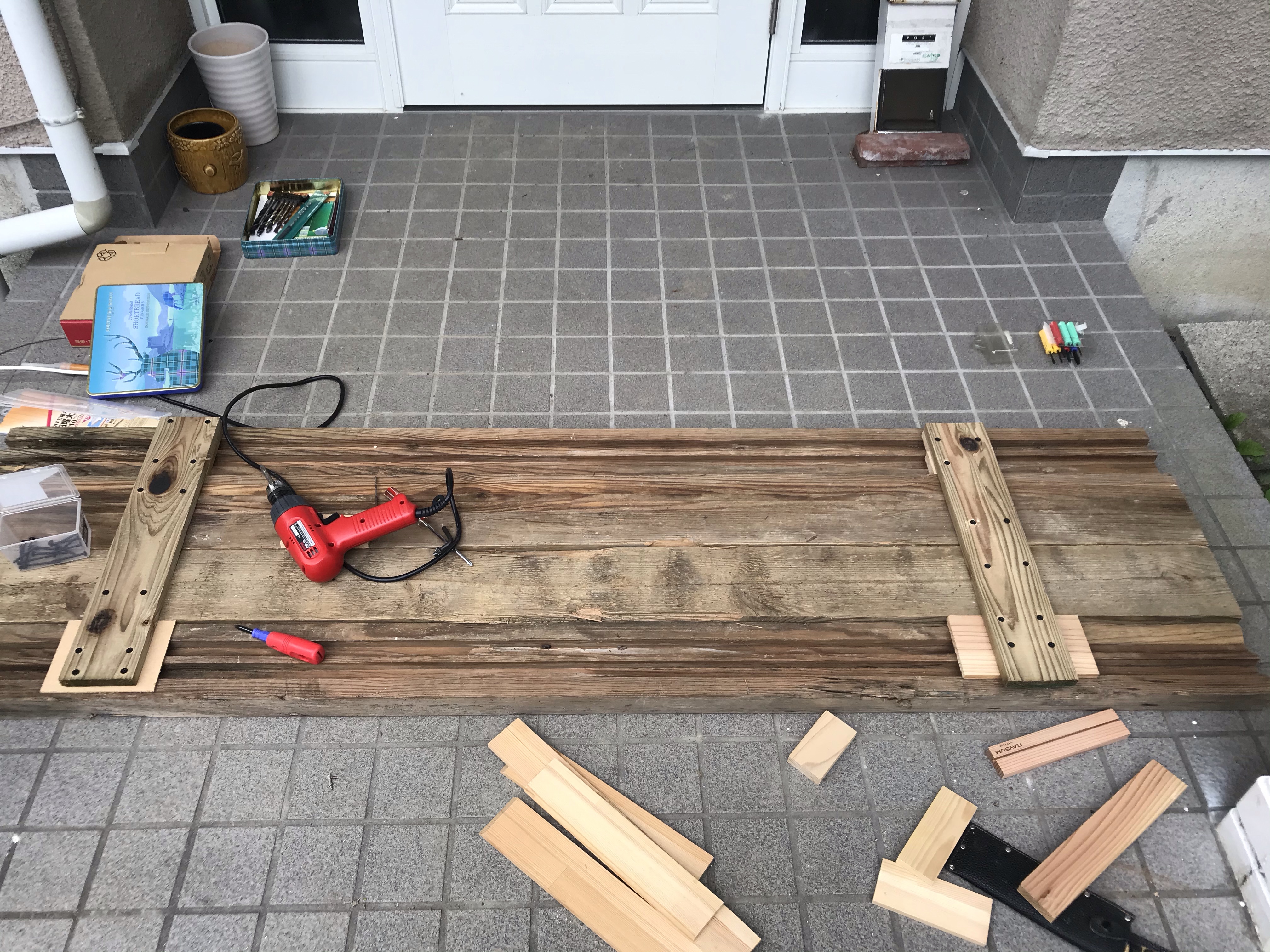 そこに先日解体して不要になったベンチの脚を有効利用して固定。