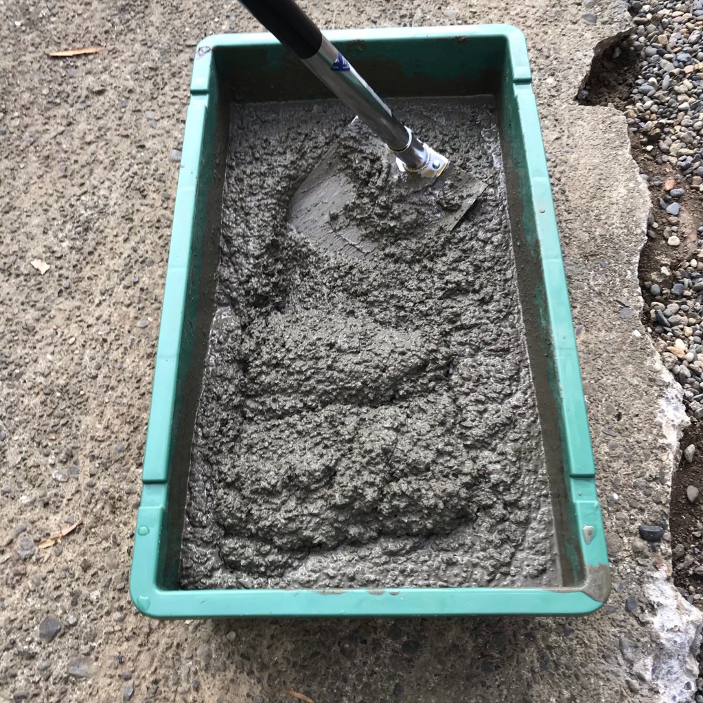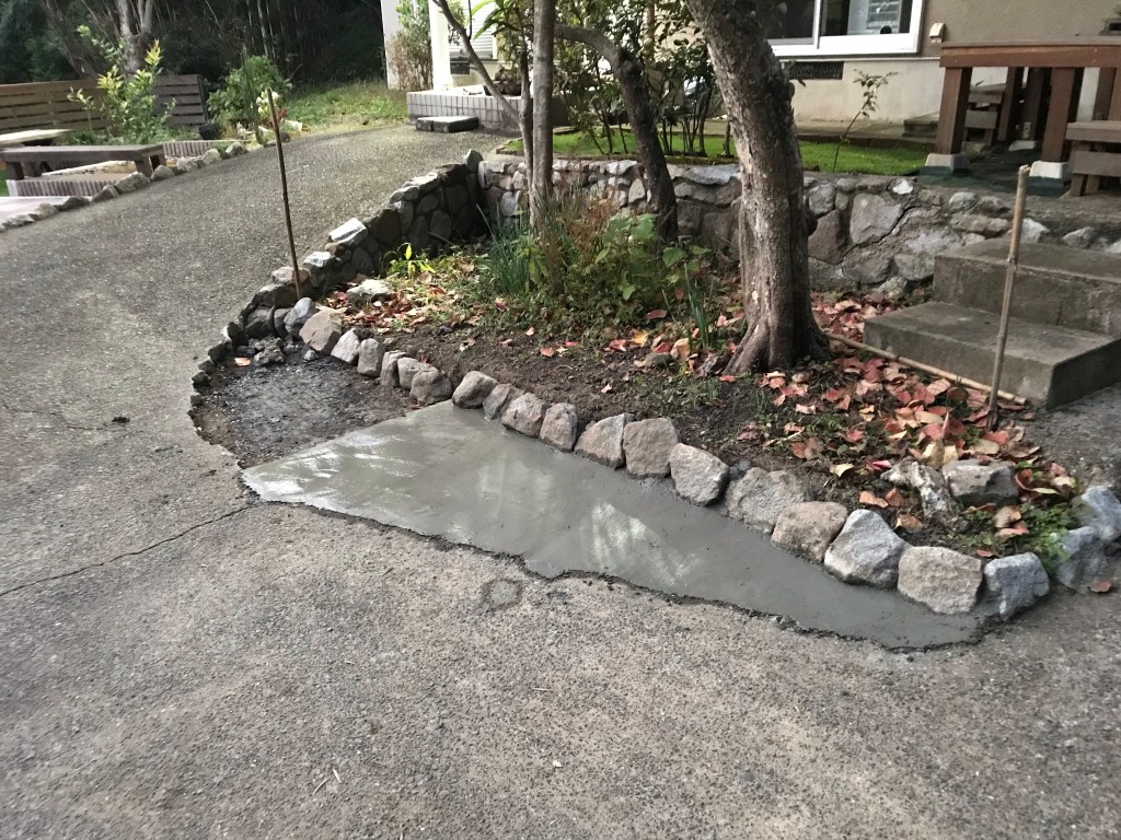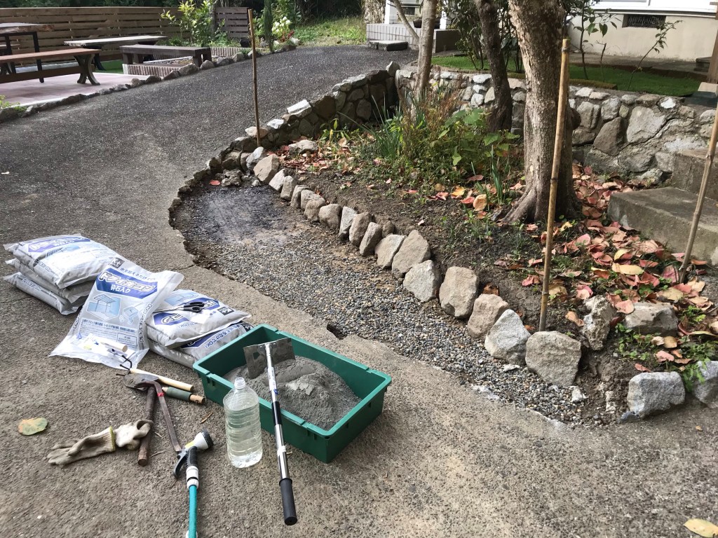 セメントに水を加えかき混ぜるのが重労働。腰、かなりキツかったです(汗)。