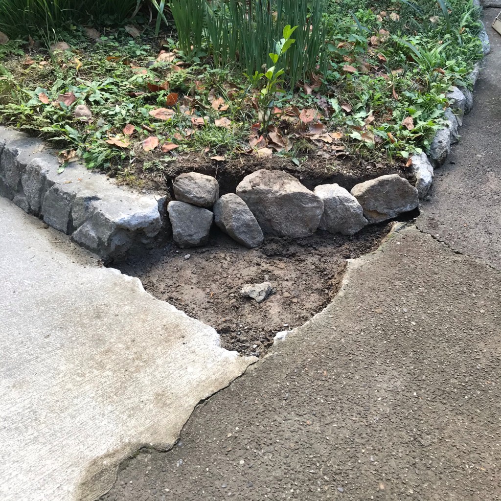 反対側の角部分も車の出入りに邪魔になるので出っ張った部分をハツリ機で壊してコンクリート打ち直し。