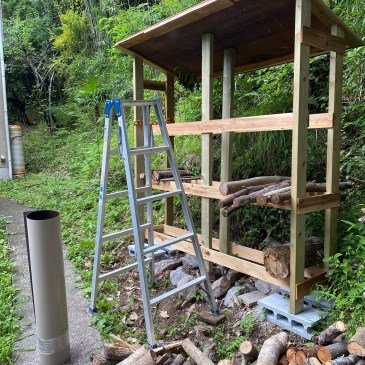 先日、一応、形が出来た薪棚ですが、薪の重さを考えると中央部分にも柱があった方が良いと思われるのと、屋根がベニアで雨ですぐに傷むのでトタンを貼ることに。 ホームセンターでトタンと柱用部材を買って来て作業。 今回の作業はここ … 続きを読む : 薪棚づくり(続編)