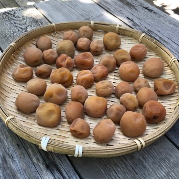 塩漬けしていたものを梅雨が明けたので天日干し。 第一弾は紫蘇なしで。 昨日、今日と二日干したらこんな感じに。 漬けた時の熟し具合で出来ようがまばら。やはり梅干しは熟したものじゃないとダメですね。