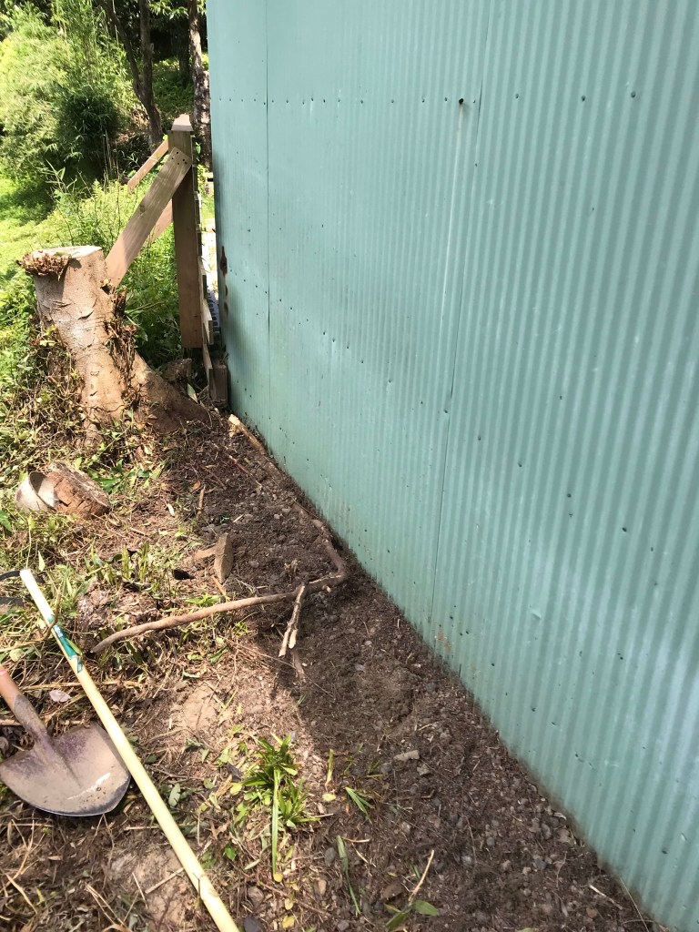 先ずは壁面の足元の整理。木や雑草の根っこを除去。これが結構大変。