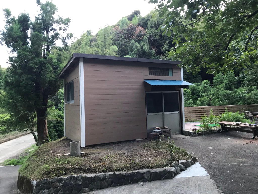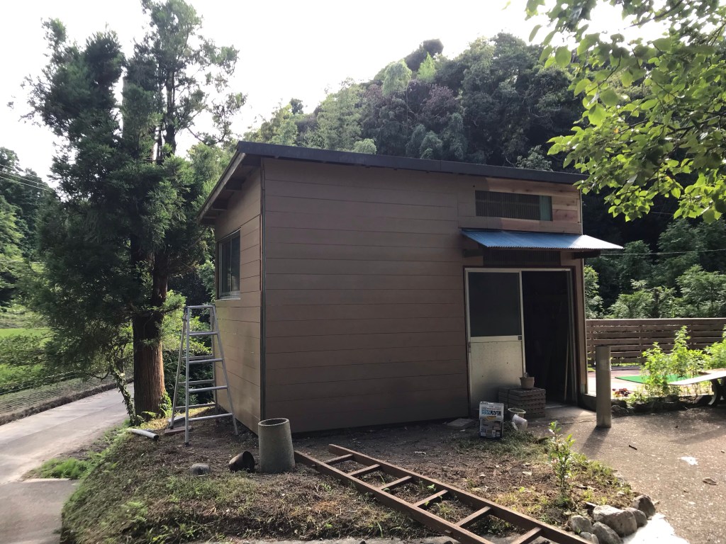 概ね出来上がりましたが、あと、あかり取りの窓づくりとサッシ窓の化粧板での窓枠作り、入り口上の青いトタンの張り替えなどをすれば完成。取り敢えず、材料はほぼ無駄なく使い切り良い感じに2日間の作業を終えました。ほっ。