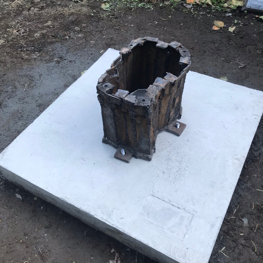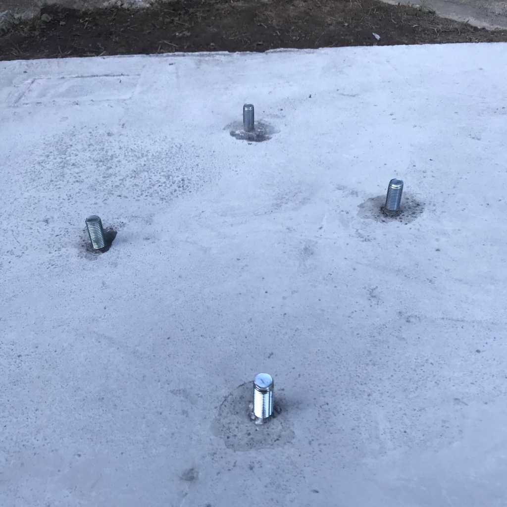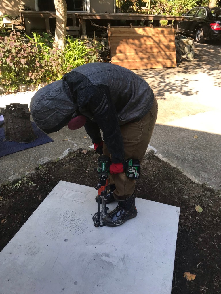 一番難しい作業がアンカーボルトの埋め込み。少しでもズレると作品がハマらなくなるのでドリルの穴あけを少しずつ進め何度も確認しながら慎重に。