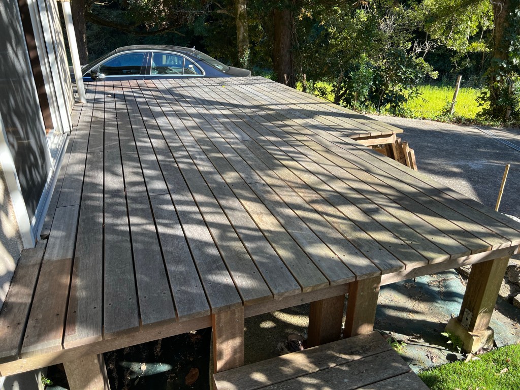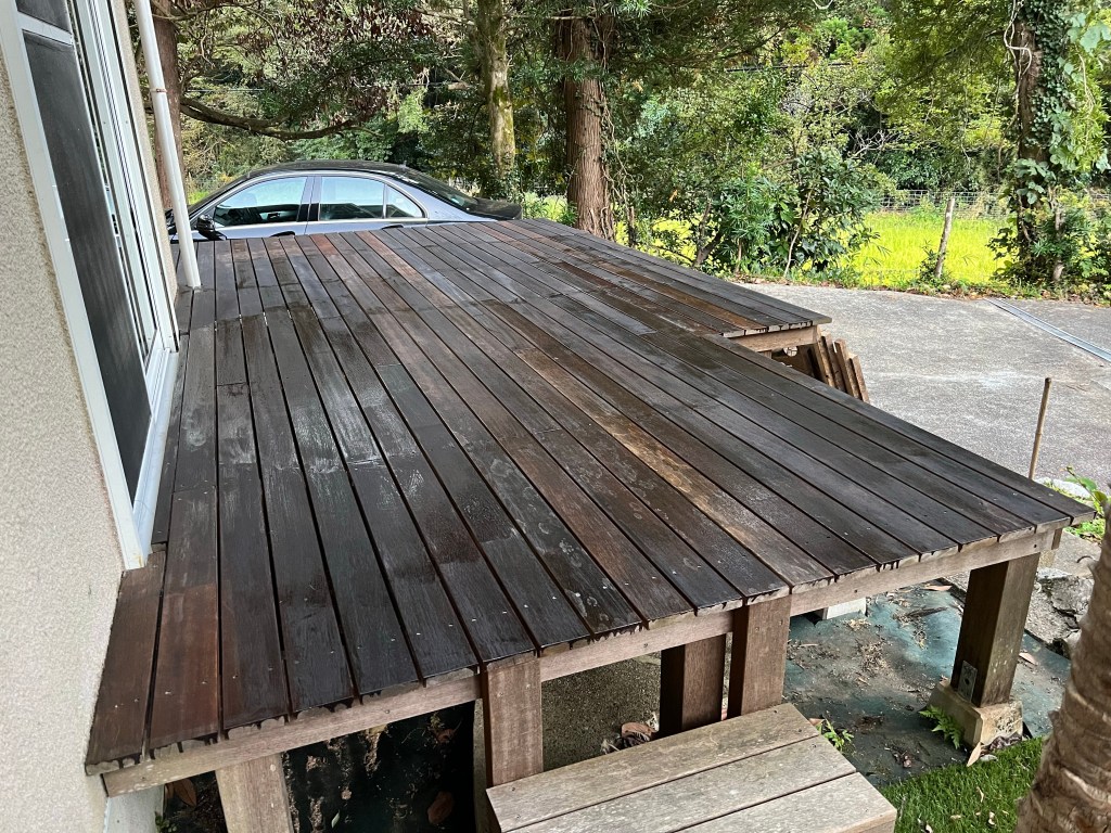 この家に来て7年目。ウッドデッキも7年目。すっかり色褪せ傷んできました。