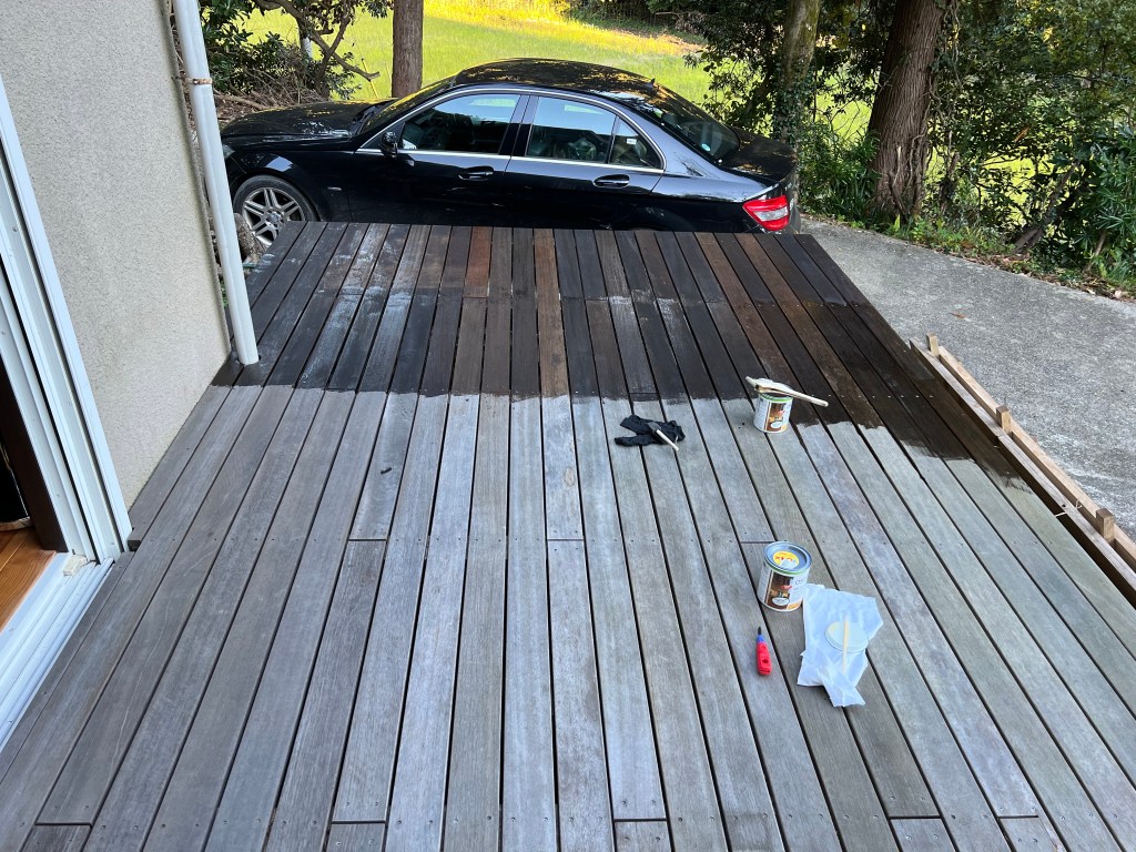 全面、側面終わったところでようやく塗装。塗料は自然系で木に浸透し木を守る、評判のオスモカラー。
