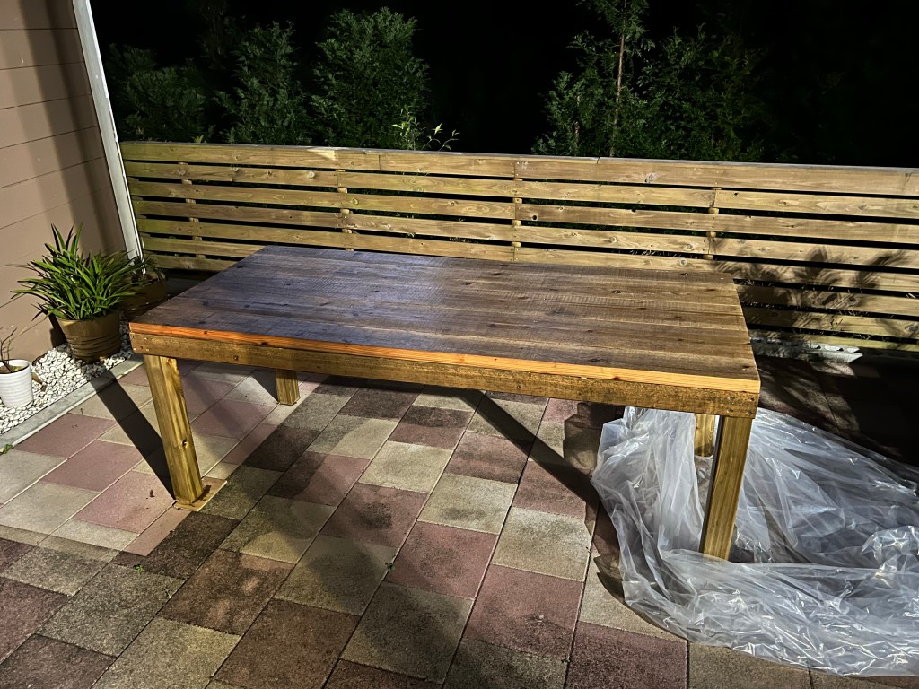 この後側面を塗り、さらに先日作ったテーブルもブラッシングして同じ塗料で塗装しました。
