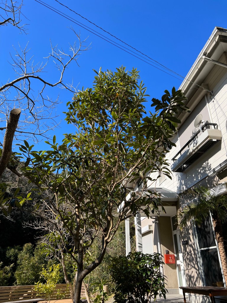 リビングの前の柿と枇杷がかなり高くまで成長し、陽の入りも悪くなっていたので思い切って剪定。