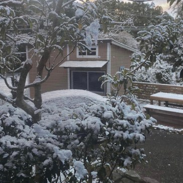 館山の家、昨日の朝、起きて窓を開けたらびっくり。雪が積もっていました。珍しいので記録。