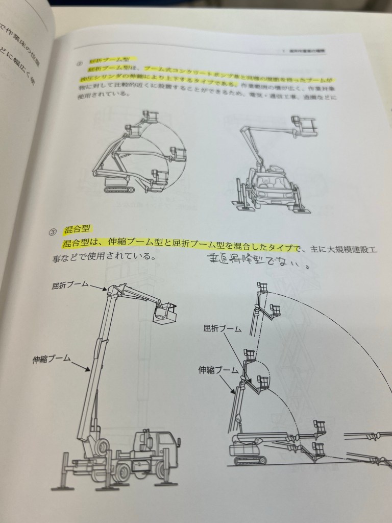 1日目はみっちり座学で高所作業車そのものに関する知識や仕組み、関連法令などを学びました。