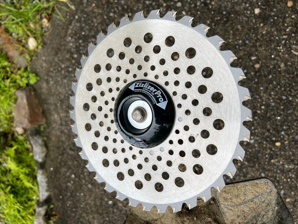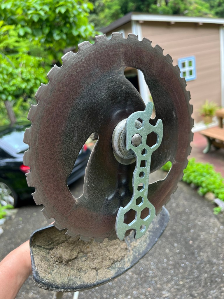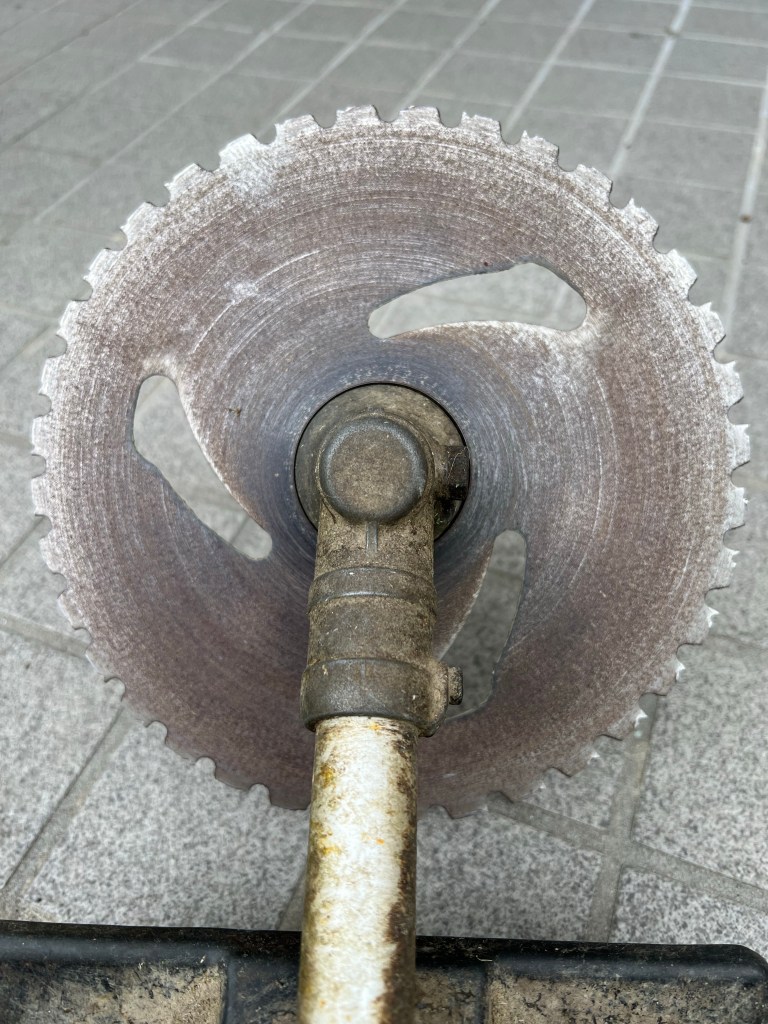 7年前、この家を購入した際、草刈機(刈払機)や鋤、鍬、チェンソー他、ここの生活に必要な道具一式を譲り受けて使っているのですが、草刈り機の刃が切れなくなり、刃を交換することに。