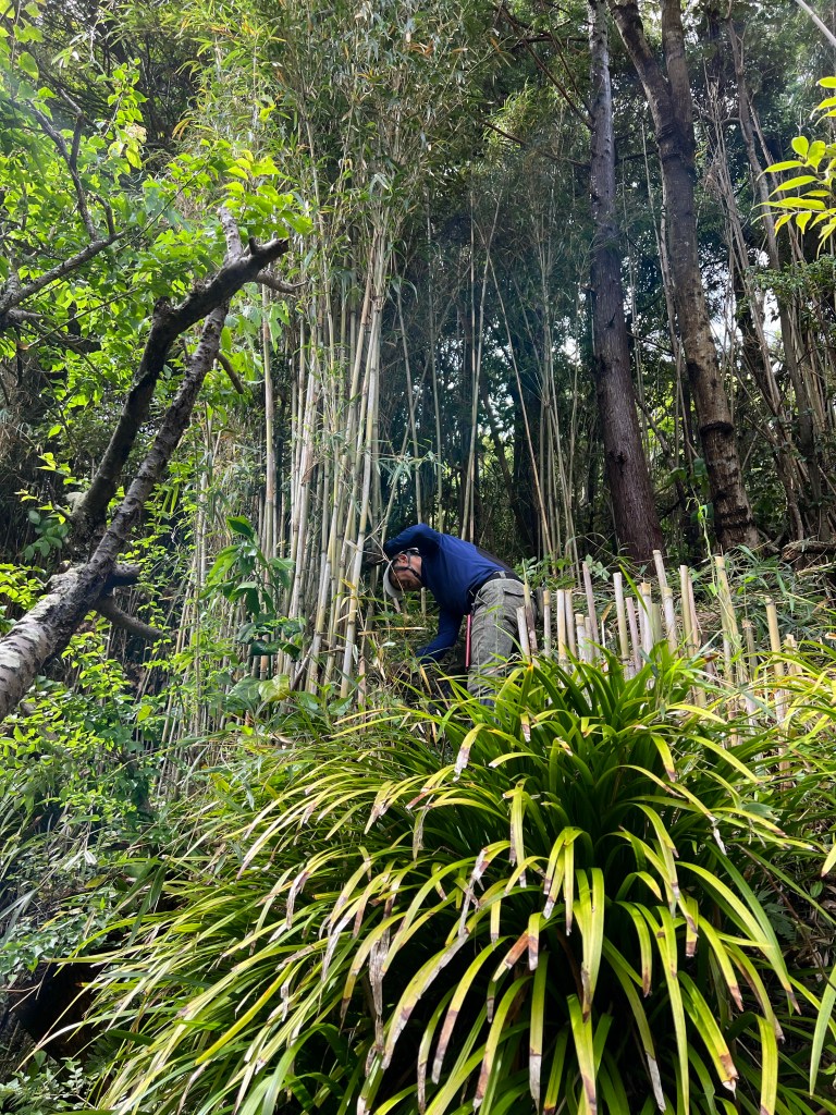 午後、雨が上がったので知人の一人が早めに来て裏山の竹の伐採を手伝ってくれました。