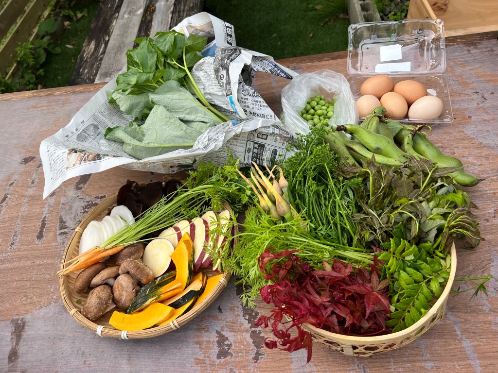 天ぷらの素材も畑から持ってきてくれたものでいっぱい。