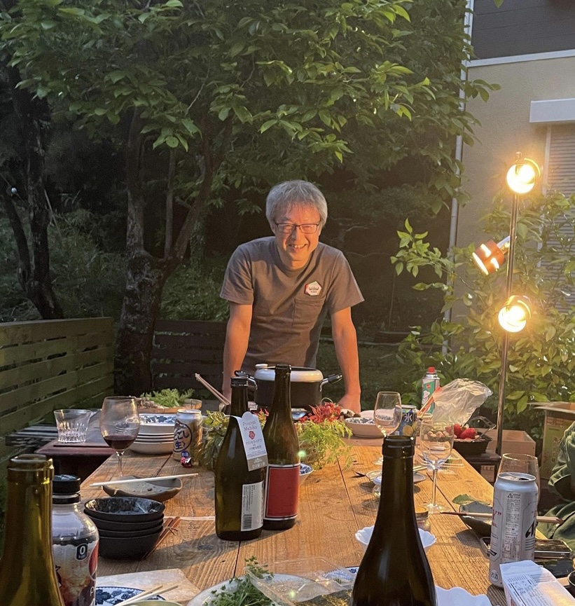 夕方から仲間達が続々と。それぞれにお酒や手作りのツマミ、天ぷらの素材も持参してくれて。