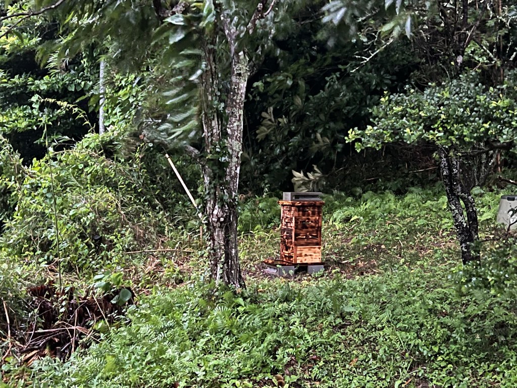 今日は台風で大雨。雨ざらしです。自然に馴染んでないとシーズンになっても蜜蜂は入ってくれないらしいので、これで一冬越し、来春、友人のアドバイスを受けて蜜蜂が入ってくれるのを待ちたいと思います。