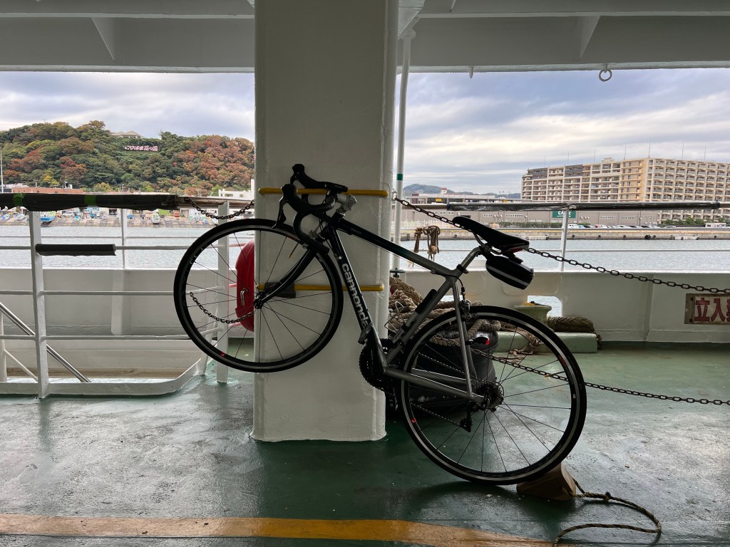 朝、自転車を積んで7時過ぎに横浜の家を出て久里浜のフェリー乗り場まで車で移動。50分程で着き、車を置いて(1日1000円の駐車場あり)、8:20発のフェリーに自転車の格好をして乗船(自転車持込みで往復2700円)。
