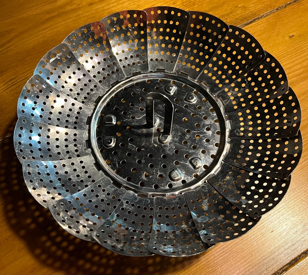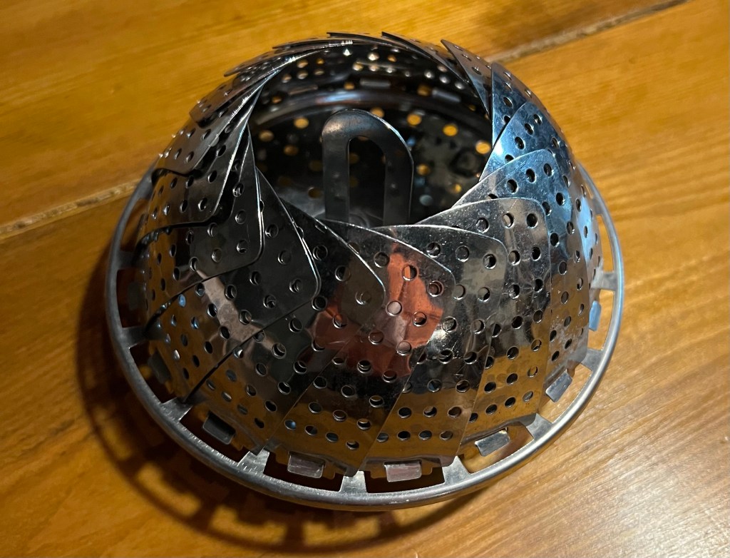 冬になると薪ストーブの灰受けに濡れた新聞紙とアルミホイールで包んださつま芋を入れ、焼き芋にして楽しんでいましたが、今日、蒸してみたらどうかなと試してみました。蒸し器は以前どこかで買ってあったこちら。