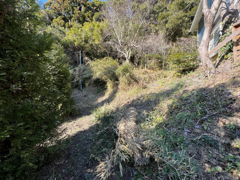 その後、裏庭の整備。梅の花が咲き出していますが、裏山から梅の木の方に伸びてきている竹や雑木を伐採。