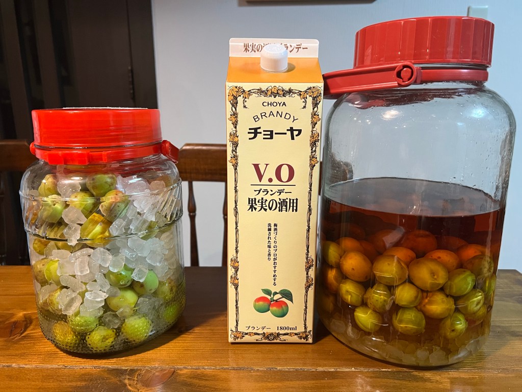 取り敢えず、梅シロップ用に1kgのジップロックを5袋作り冷凍庫へ。1kgは梅シロップに、もう1kgはチョーヤのブランデーベースで梅酒用に。