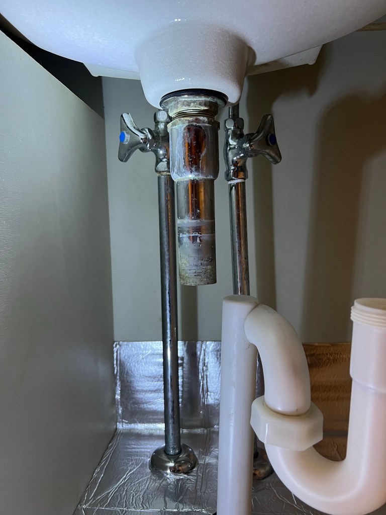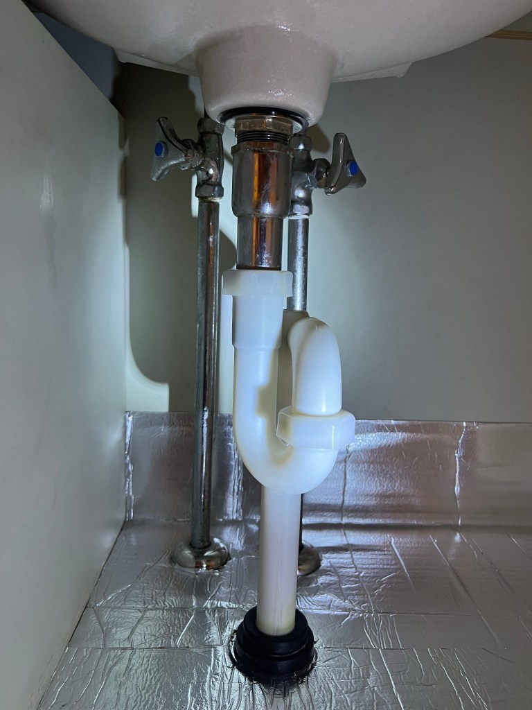 洗面所で水を流すと洗面所下の排水管からポツ、ポツと水漏れすることを発見。パッキンの硬化が原因と推測し、交換することに。