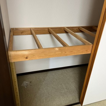 2階の押入れ、棚が無いので布団類をしまうのに下から積み上げることになり、一旦積み上げてしまうと下の物を取り出すのが大変でした。 今般、横浜の家のリフォームで押入れを空調の機械室にするため、つぶすことになり、その中段の棚を … 続きを読む : 押入れに中段の棚を増設