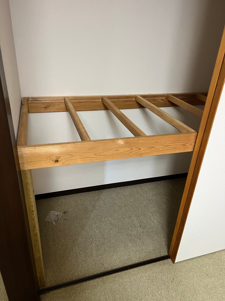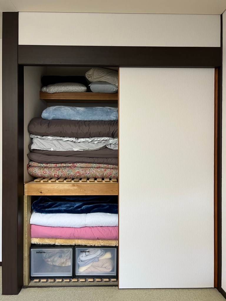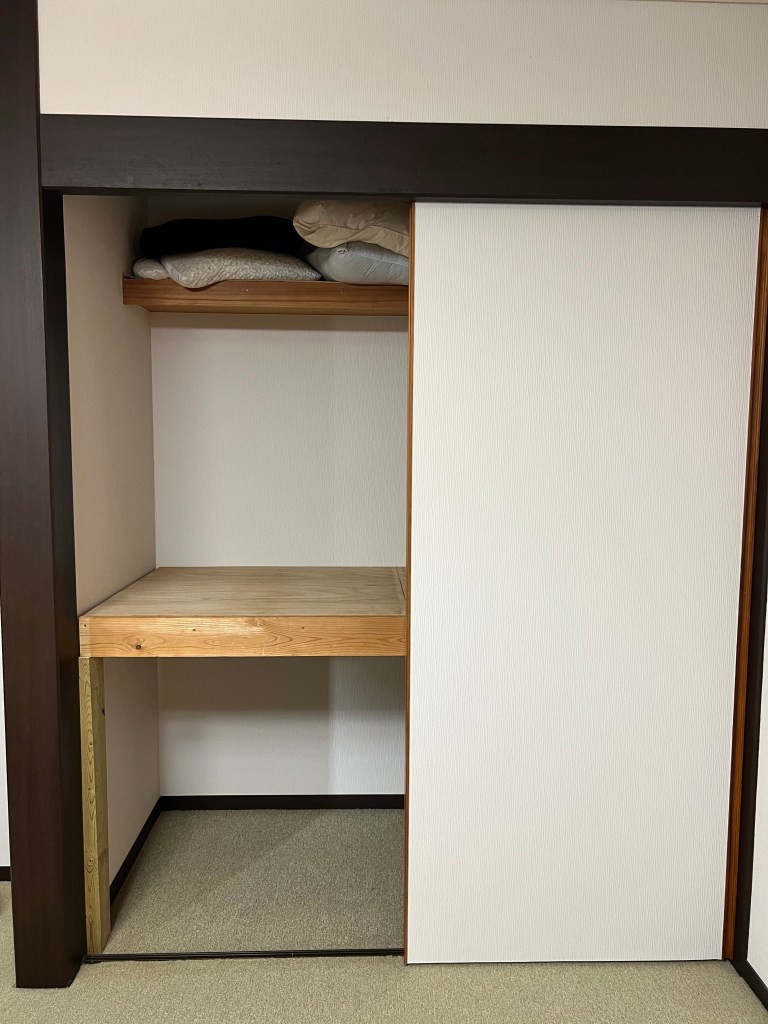 2階の押入れ、棚が無いので布団類をしまうのに下から積み上げることになり、一旦積み上げてしまうと下の物を取り出すのが大変でした。