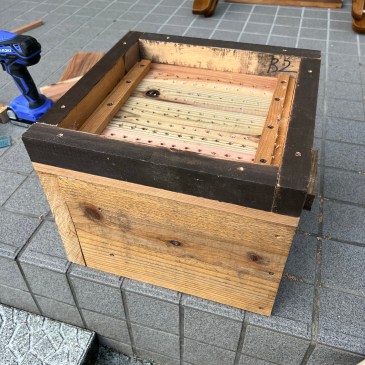 蜜蜂の巣が四段箱の下まで来ているのでそろそろ一番上の段の分の蜜を頂こうかと思っているのですが、この養蜂箱にはトップにアカリンダニ対策のハッカを入れるスノコの箱が無く、採蜜の作業時に載せるため、自分で作ることに。 物置きに … 続きを読む : 物置きの整理と養蜂箱改良